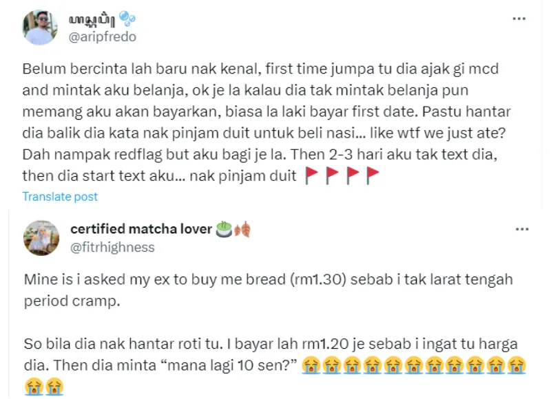 For some, their worst dating experiences were with cheapskates and gold diggers. One man said that the girl he was seeing asked for some McDonald’s on the first date but, on the same day, also asked to borrow some money so she could buy some food. After a few days of no contact, the woman suddenly texted him – asking to borrow money. On the other hand, a woman said her ex-boyfriend was so calculative that he even asked for the remaining 10 cents she left out from paying him back after asking him to buy bread for her.