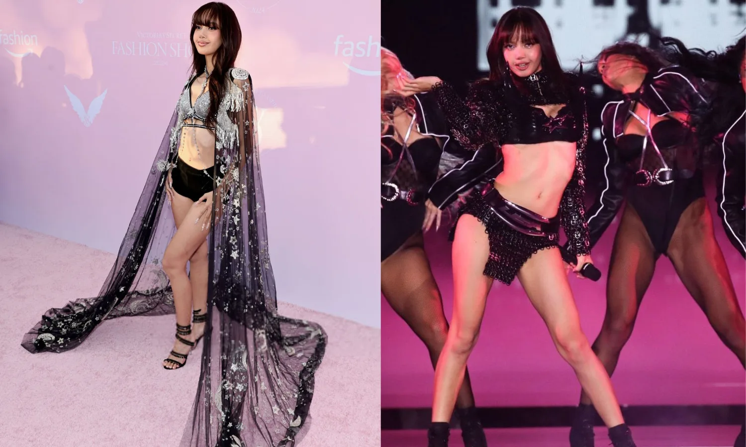 Kudos to her heavenly attire; BLACKPINK’S Lisa shined brightly with her sparkly lingerie. The Thai singer, who is set to perform at the show, borrowed a look from Victoria’s Secret 2018 show. She was seen spotting a sheer black cape embroidered with constellations of stars and moon, paired with suede shorts and the brand’s signature Bombshell bra, studded with a rhinestone-encrusted collar and a band around her ribs.