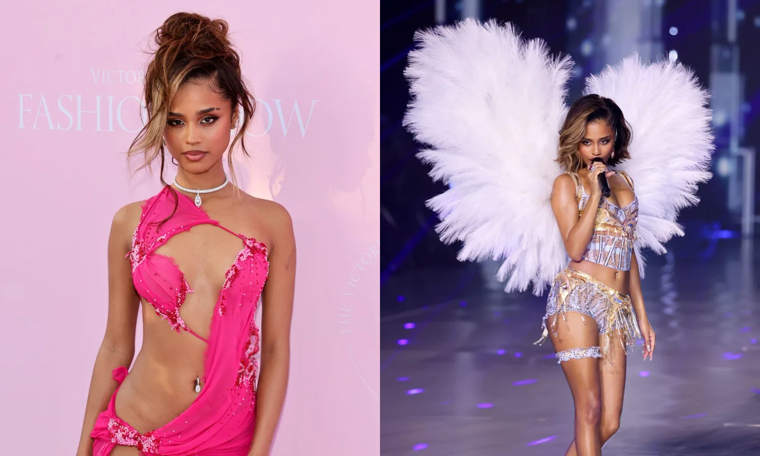 THE Grammy-winning artist brought a sexy cutout look to the pink carpet ahead of the Fashion Show. Tyla wore a Salih Balta gown, which featured crystal embellishments, and a floor-length train. Her outfit was completed with bedazzled open-toe heels, a diamond-encrusted choker and layered rings.