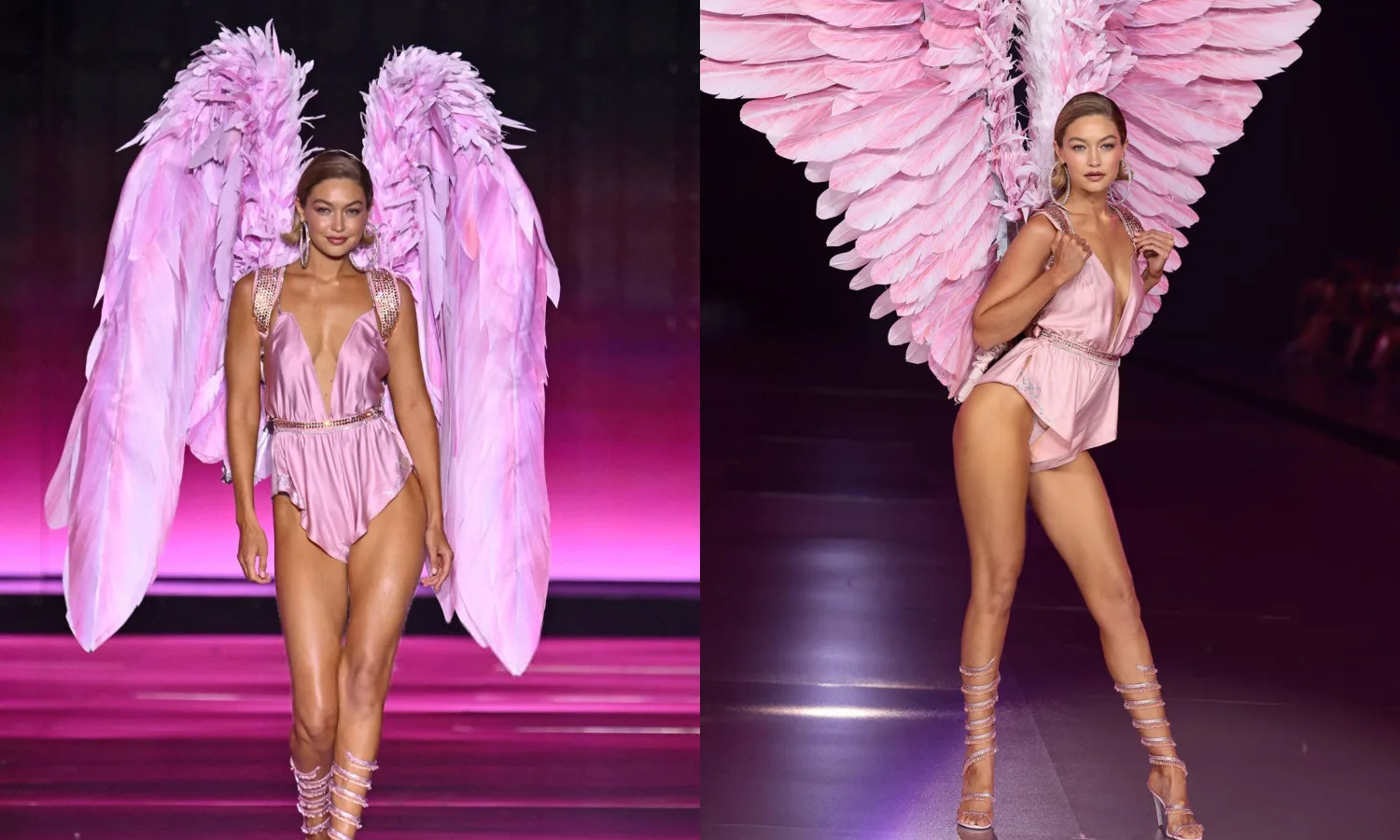 Meanwhile, on the runway, Gigi Hadid made her highly anticipated return to the Victoria’s Secret Fashion Show runway by opening the event with an unforgettable look. She hit the runway with a soft, feminine aesthetic, wearing a pink satin bodysuit.