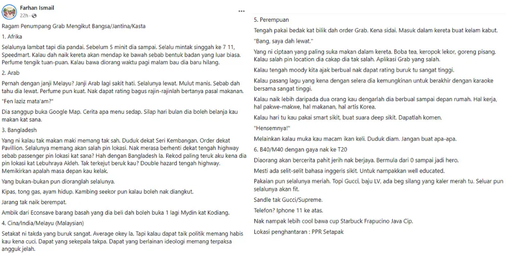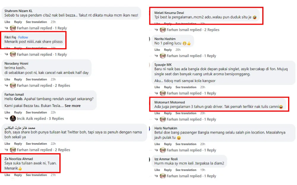After sharing his experiences, Farhan’s post had many netizens amused as his observations were rather interesting. Some even said that Farhan must’ve had fun driving around such customers. Other Grab drivers joked that they’d never thought to compile a list like Farhan’s.