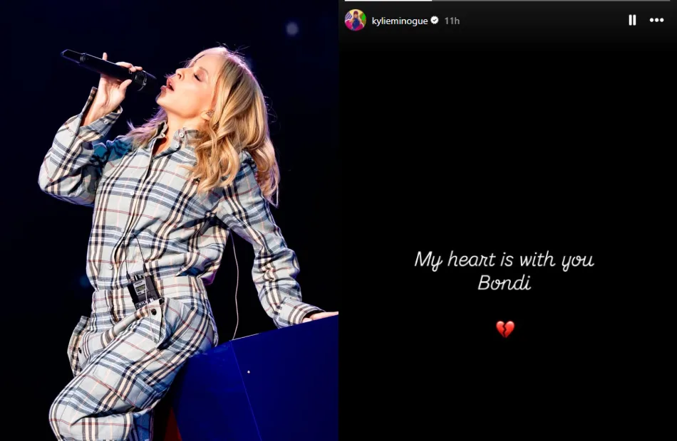 Australian icon Kylie Minogue took to her Instagram to write a simple message that her heart is with the Bondi Beach victims.