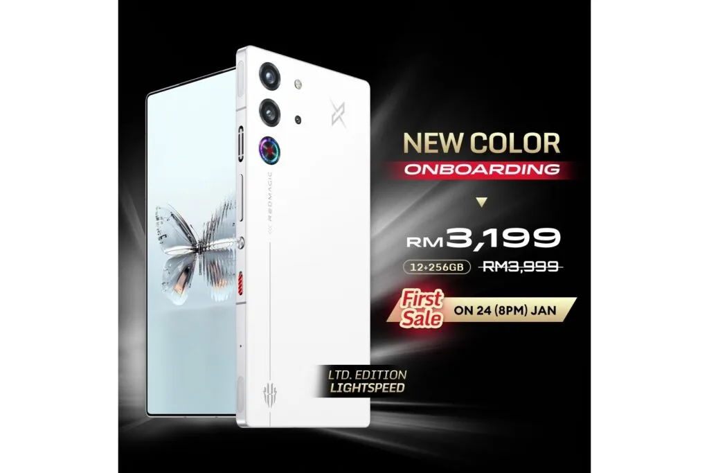 Next up, a brick that breaths. Seriously, REDMAGIC was serious with the gaming part of this phone, that it has a whirling fan inside that spins 23,000 revolutions per minute which keeps the Snapdagron 8 Elite cool under load. There’s a special launch exclusive colourway LightSpeed, alongside a special discount of RM800. This special edition is loaded with 12GB of RAM and 256GB of storage, 2688×1216 AMOLED 144Hz display, fed by a 6,500mAh battery.