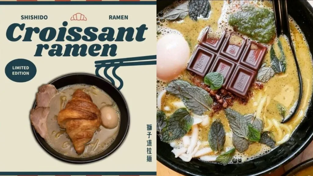 Forget regular ramens, because at Ramen Bar Shi Shi Do, you get to try ramen flavours that’ll blow your mind. Some of the bizarre but must-tries are Chocolate Ramen (literally a bar of chocolate in your ramen soup) and Croissant Ramen (a combination of Black Garlic Curry Soup with 2 slices of Char siew, topped with Brown Shimeji mushrooms, Bean sprouts, Cabbage, Egg and Croissant). Do try out other items available on the rice menu, as well as sides and cool beverages.