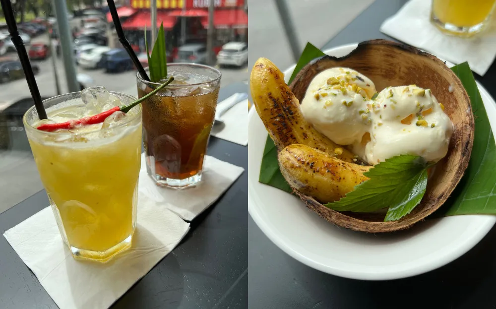 We also recommend trying their unique drink selections – the refreshingly sweet Teh Malaya and the tangy Jus Tiga Rasa that packs a punch. While their dessert menu is limited, the Pisang Bakar with grilled banana, palm syrup and vanilla ice cream topped with pistachio was a sweet way to end a fulfilling meal.