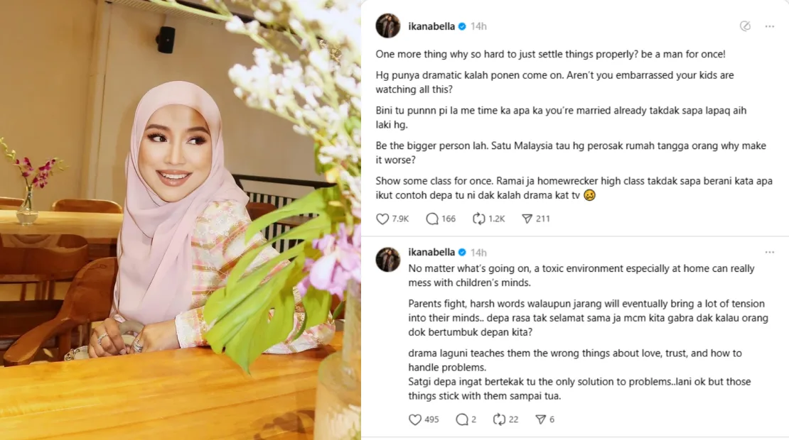 Singer Ika Nabella took to Threads to urge Cik Epal and Jofliam to resolve their dispute privately and peacefully. She directed most of her criticism at the latter, alleging that he had failed to fulfil his responsibilities, while also calling out his new wife for further escalating the situation. “Aren’t you embarrassed that your kids are watching all this? As for your wife, the whole of Malaysia knows you’re a homewrecker. Why make this worse for yourself? Show some class for once,” wrote the former Akademi Fantasia contestant.