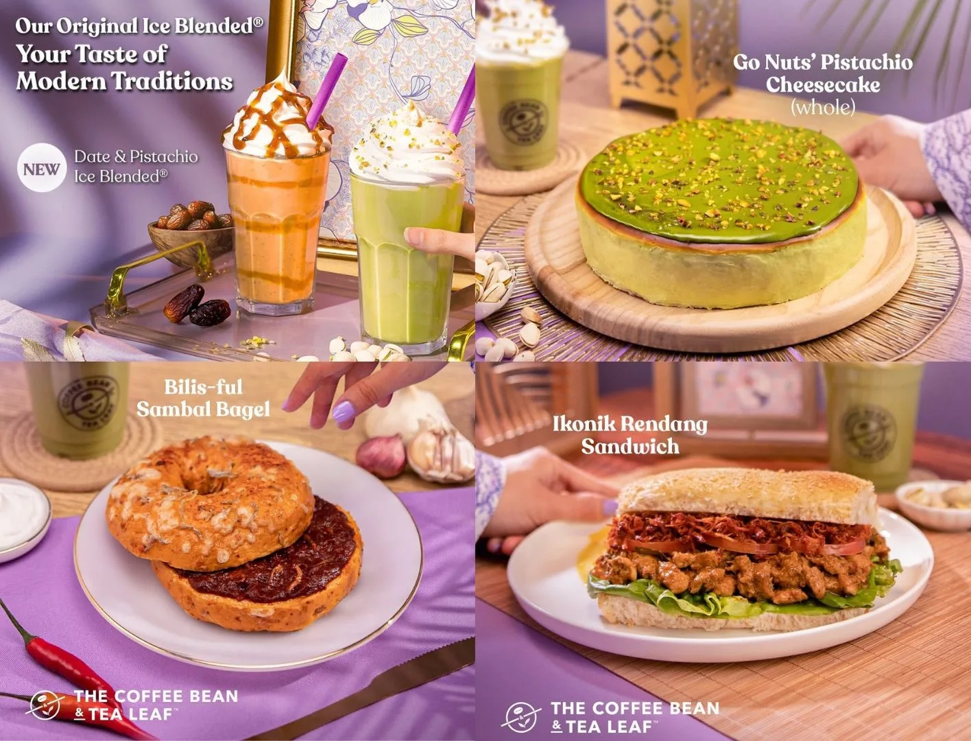 This festive season, The Coffee Bean & Tea Leaf is launching a brand-new Ramadhan Series, bringing a delightful blend of flavours to celebrate the spirit of the season. The menu features the indulgent Date & Pistachio Ice Blended, the rich and nutty Go Nuts’ Pistachio Whole Cake, the savoury Bilis-ful Sambal Bagel, and the flavour-packed Ikonic Rendang Sandwich. Whether you’re craving something sweet, creamy, or savoury, this limited-time series offers the perfect treats to enjoy during Ramadhan. Don’t miss out on these festive delights—only at The Coffee Bean & Tea Leaf!