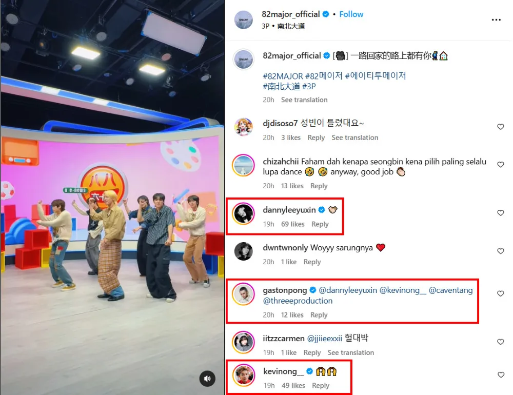 82MAJOR also shared a few videos of them while in Malaysia, including one of them dancing to 3P’s Chinese New Year track, “North-South Expressway (南北大道)”. The video posted on Instagram even attracted the attention of singer Gaston Pong and 3P members Danny Lee and Kevin Ong, who complimented the group’s dance cover. According to their social media, the group also did a press tour where they appeared on several local television broadcasts.