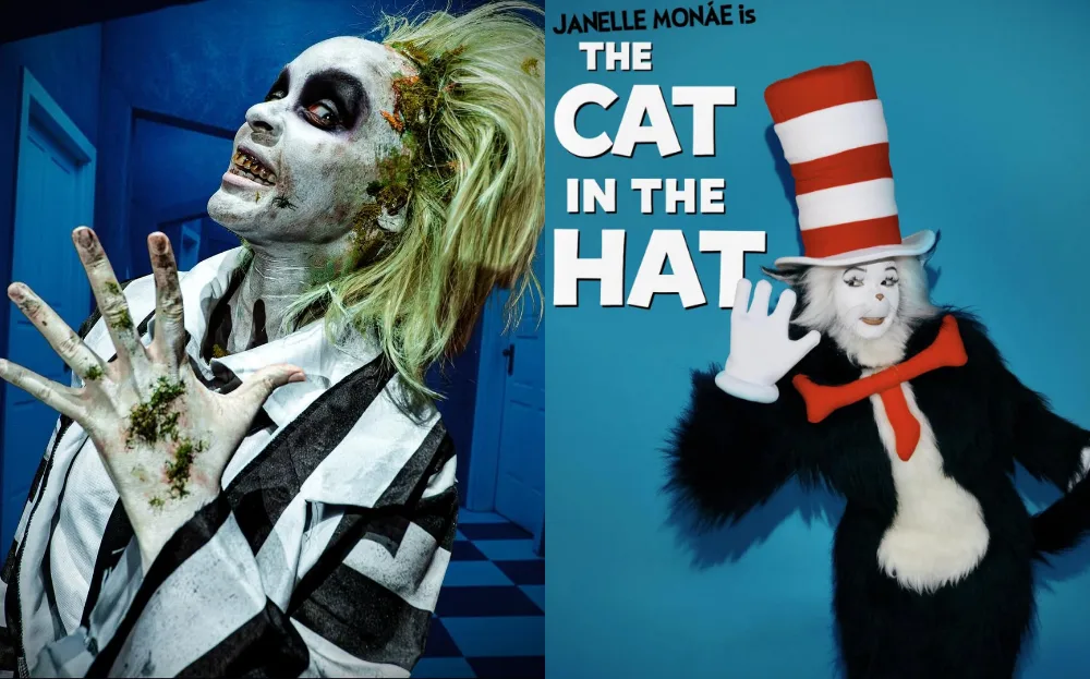 Janelle Monáe gave fans multiple treats this Halloween. She first appeared as the ghostly Beetlejuice, complete with eccentric stripes and chaotic energy, before switching it up with a playful Cat in the Hat costume during her appearance on “The Jennifer Hudson Show”. Versatile, fun, and effortlessly cool, she nailed both looks.