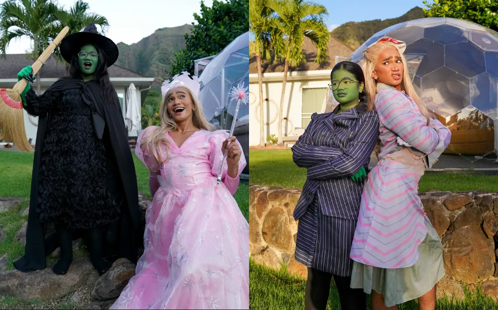 Beauty influencer Bretman Rock, joined by his niece Cleo, embraced Broadway magic by dressing as Glinda and Elphaba from “Wicked”. With vibrant wigs, stunning gowns, and their signature charisma, the duo brought the beloved characters to life.