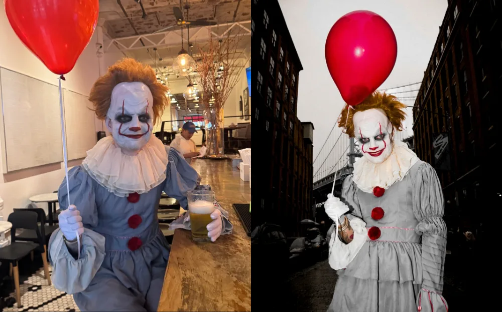 Ed Sheeran leaned into his signature ginger hair for a brilliantly eerie twist, dressing up as Pennywise the Dancing Clown from Stephen King’s “It”. The singer even delighted fans by documenting his transformation. From applying clown makeup to cheerfully waving at children and battling strong winds while trying to eat pizza outdoors, it was spooky, silly, and perfectly on-brand for the lovable Brit.