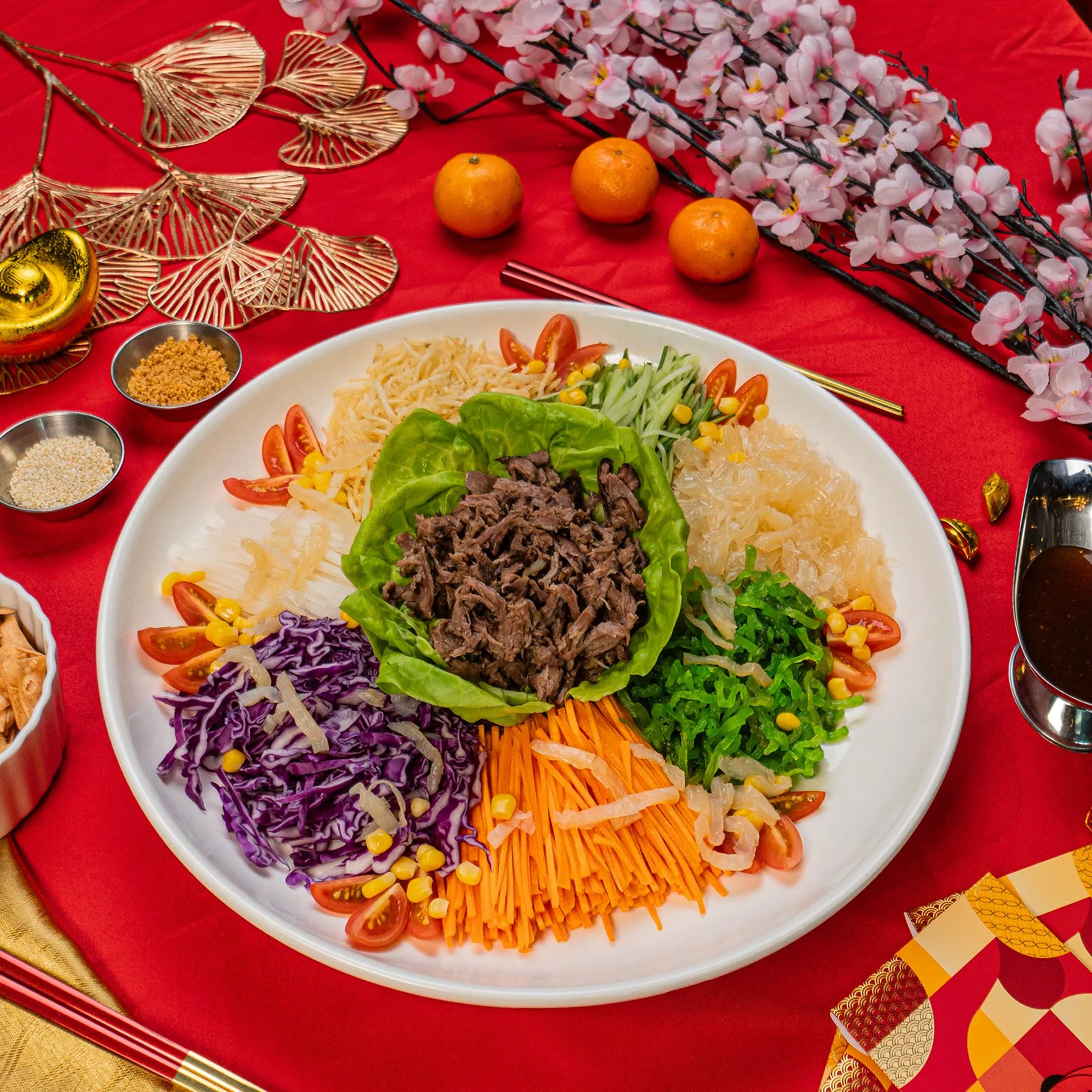 Maria’s SteakCafe offers a delightful fusion of East and West with its signature Pulled Beef Yee Sang – a classic festive dish enhanced with premium Western flavours. The pulled beef is slow-cooked to perfection until tender and juicy, then shredded and placed at the centre, ready to be tossed with the toppings for an explosion of flavours. For those who prefer a more traditional option, Maria’s SteakCafe also serves Smoked Salmon Yee Sang. Each version is meticulously prepared, ensuring every toss brings good fortune for the year ahead.