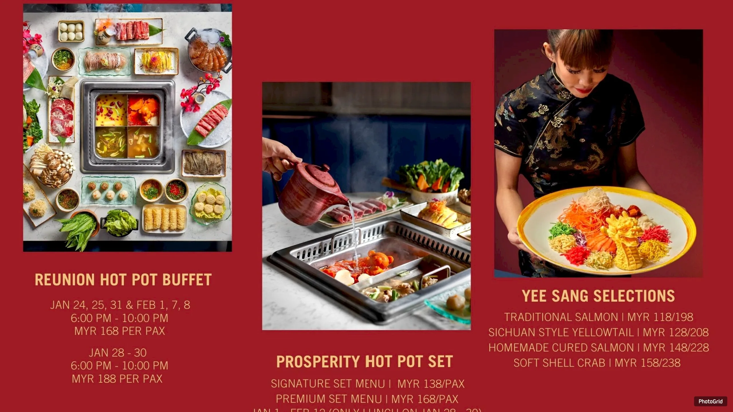 Yee Sang is available for both dine-in and takeaway, with fresh topping selections including traditional or cured salmon, soft shell crab, and Sichuan-style yellowtail. Additionally, the traditional Poon Choi Treasure Pot is offered at RM698 nett, with two flavourful options to choose from, and each purchase includes a multipurpose thermal bag.