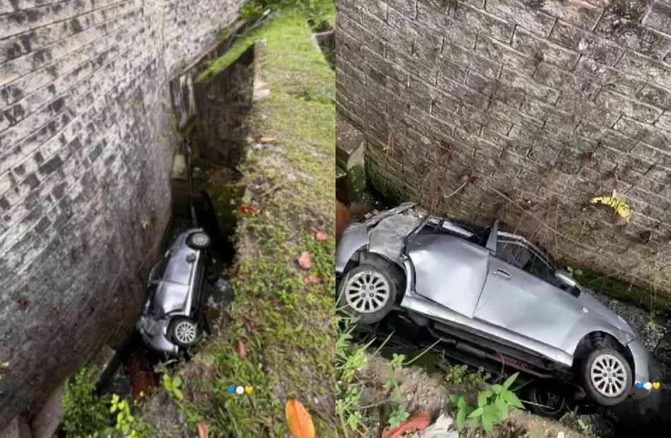 While witnessing a car crashing into a drain may not be entirely unusual, this Perodua Viva caught other road users by surprise when it plunged several metres into a large drain. The accident occurred in Bukit Jambul, Penang and according to a Facebook post, the incident occurred when the driver lost control of the vehicle while making a turn, possibly due to speeding. No updates on the driver’s well-being.