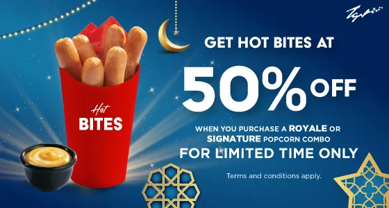 While you observe the holy month of Ramadan, don’t forget to check out some new and cool movies at TGV too! TGV celebrates the month of Ramadan with 50% off* on Hot Bites (ala carte) with any purchase of the Royale Popcorn Combo OR the Signature Popcorn Combo! Grab this offer while it lasts.