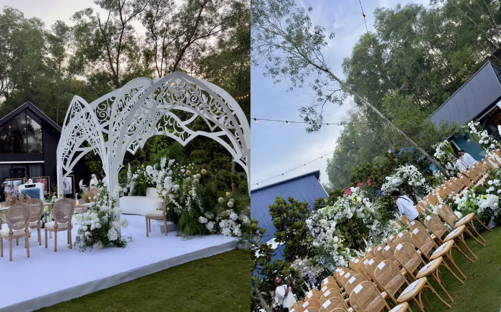 The wedding reception embraced a crisp white theme with a contemporary garden concept, beautifully adorned with delicate white blooms. The serene floral arrangements and soft ambience created an enchanting atmosphere that complemented the couple’s refined taste. It was a celebration rooted in elegance, intimacy and heartfelt simplicity.