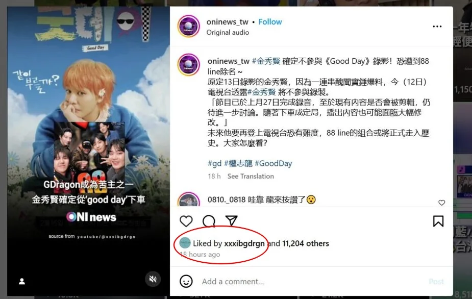 Reports suggested that Soo Hyun would later withdraw from filming more episodes and that his upcoming appearances will be limited. As for G-Dragon himself, he was caught liking a news post regarding the actor’s withdrawal which would imply that he no longer wants him to participate in the programme.