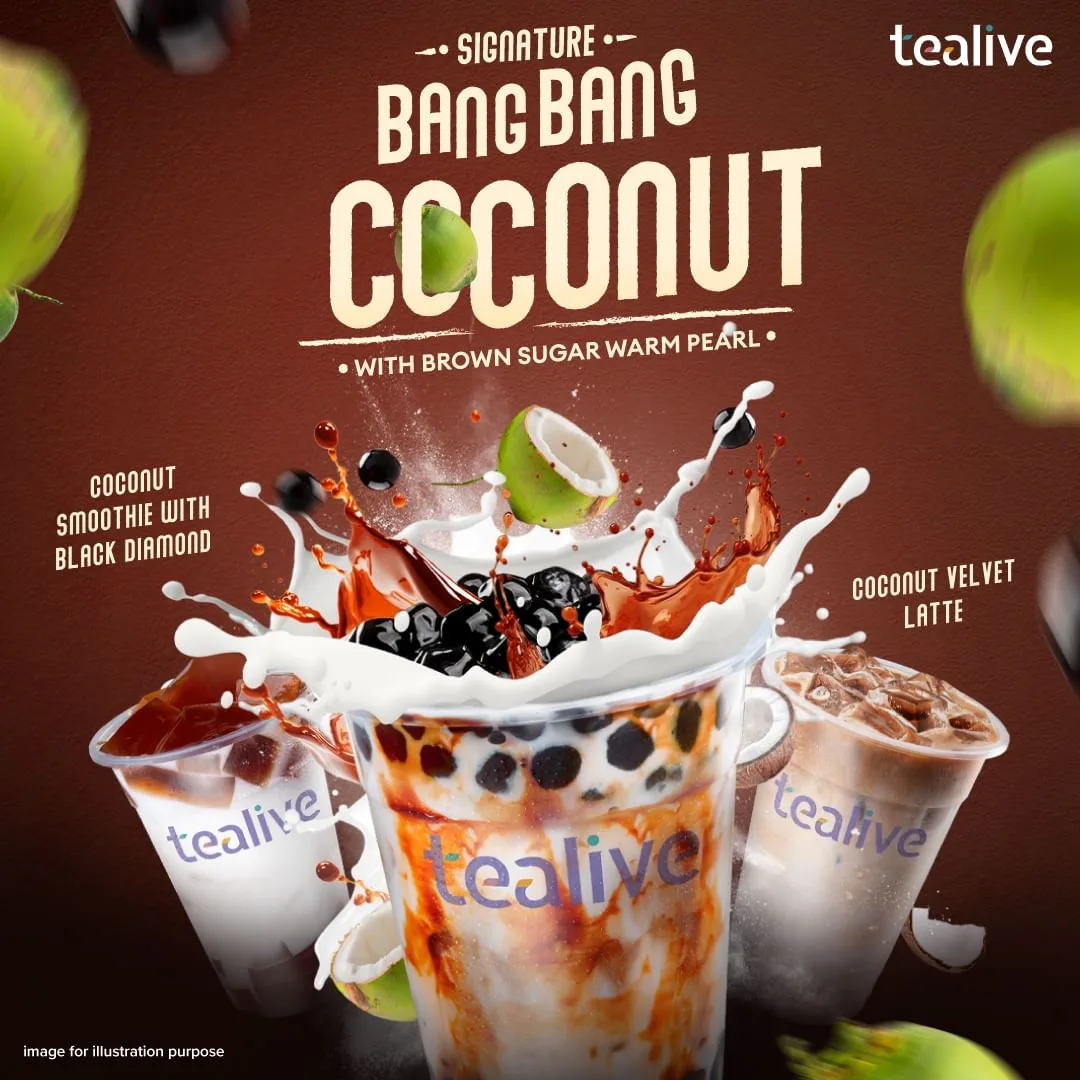 In addition to Bang Bang Coconut, Tealive is also introducing two more new coconut-based drinks to its menu – Coconut Smoothie and Coconut Velvet Latte. Both beverages offer a cool, indulgent escape perfect for a sunny day, adding to the rich array of choices Tealive is known for. The Bang Bang Coconut series, available for a limited time only, will include Bang Bang Coconut with Brown Sugar Warm Pearls, Coconut Smoothie with Black Diamond and Coconut Velvet Latte.