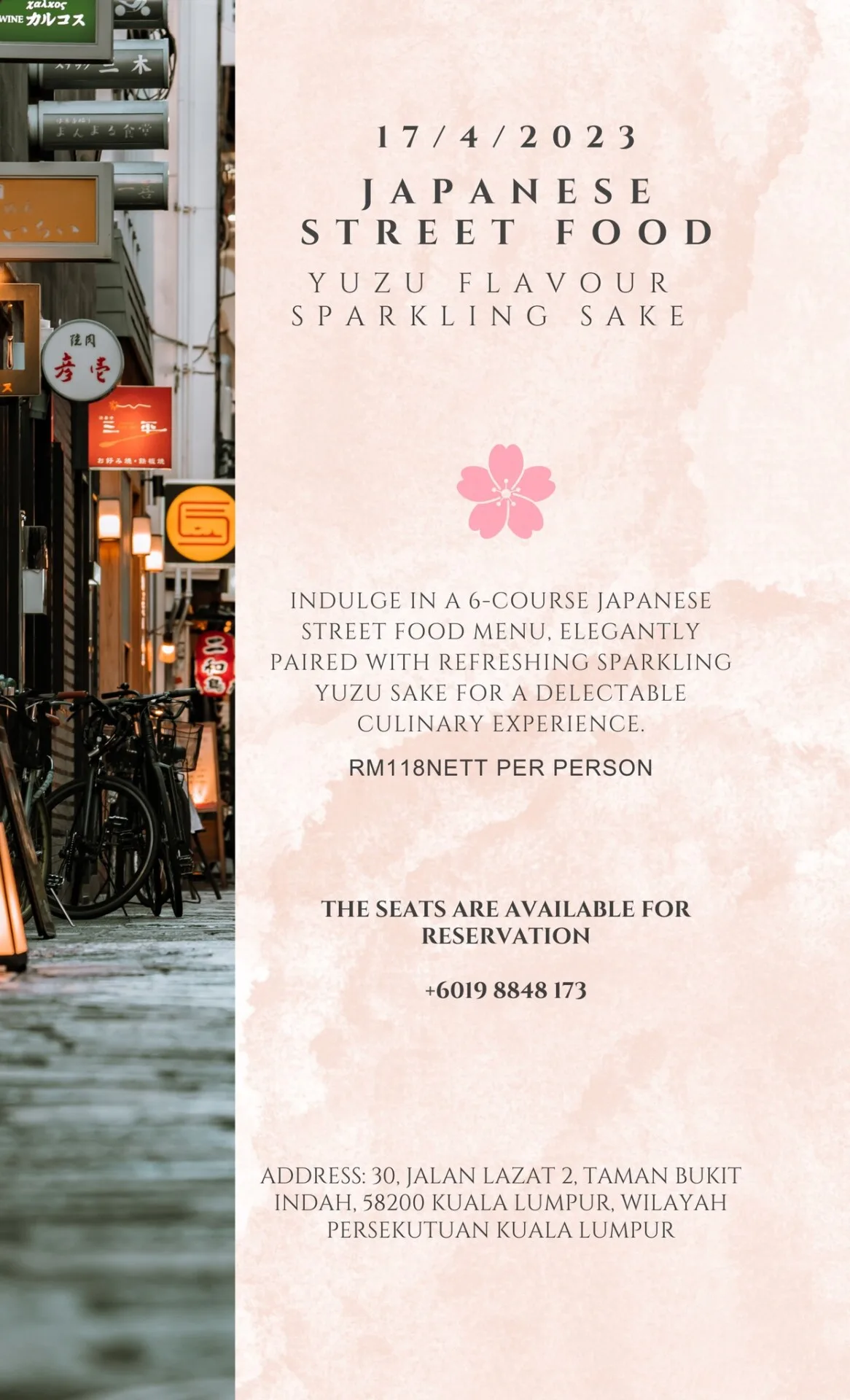 We get that getting a ticket to visit Japan and enjoying Japanese street food might be a tall order – but we’ve got your back. Experience a 6-course Japanese street food menu with a side of sparkling yuzu sake here in Malaysia! Yes, you read that right – Japanese street food right here! And it’s not 1 or 2 – it’s a total of 6 courses of Japanese street food! Moreover, who would say ‘no’ to sake to complement such hearty cuisine? Reserve a seat through their WhatsApp before it’s too late! Click here for more information.