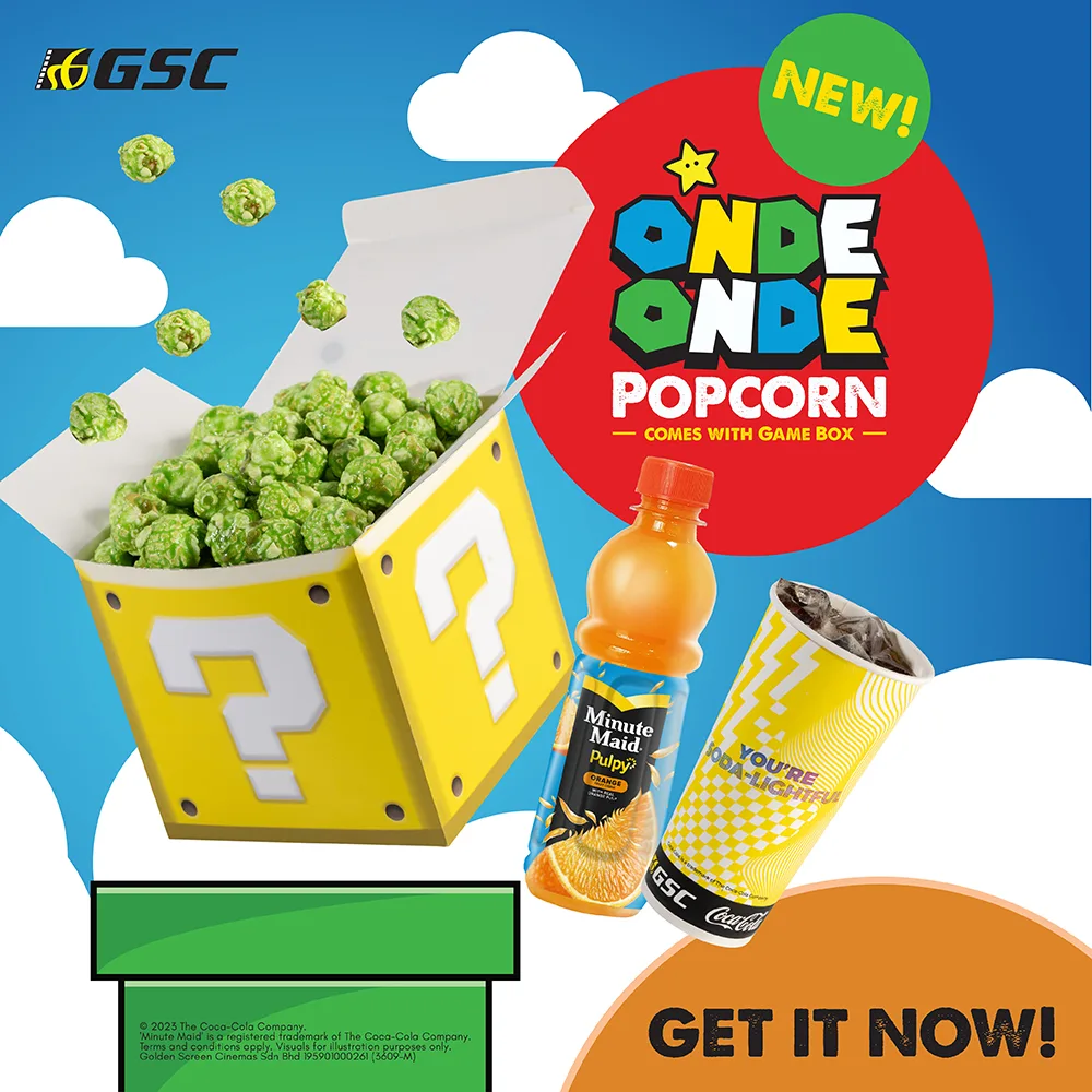 In conjunction with the release of the much-awaited The Super Mario Bros’ movie, GSC has launched a limited-time-only Super Game Box, featuring the all-new Onde-Onde Popcorn, inspired by the flavours of freshly-grated coconut and aromatic pandan. Encased in the signature Mystery box from The Super Mario Bros’ game series, the green-tinged onde-onde popcorn even loosely resembles the Koopa Troopa shells. The combo set is complete with a large soft drink of your choice and a bottle of Minute Maid orange juice (300ml) to refresh your cinematic experiences!