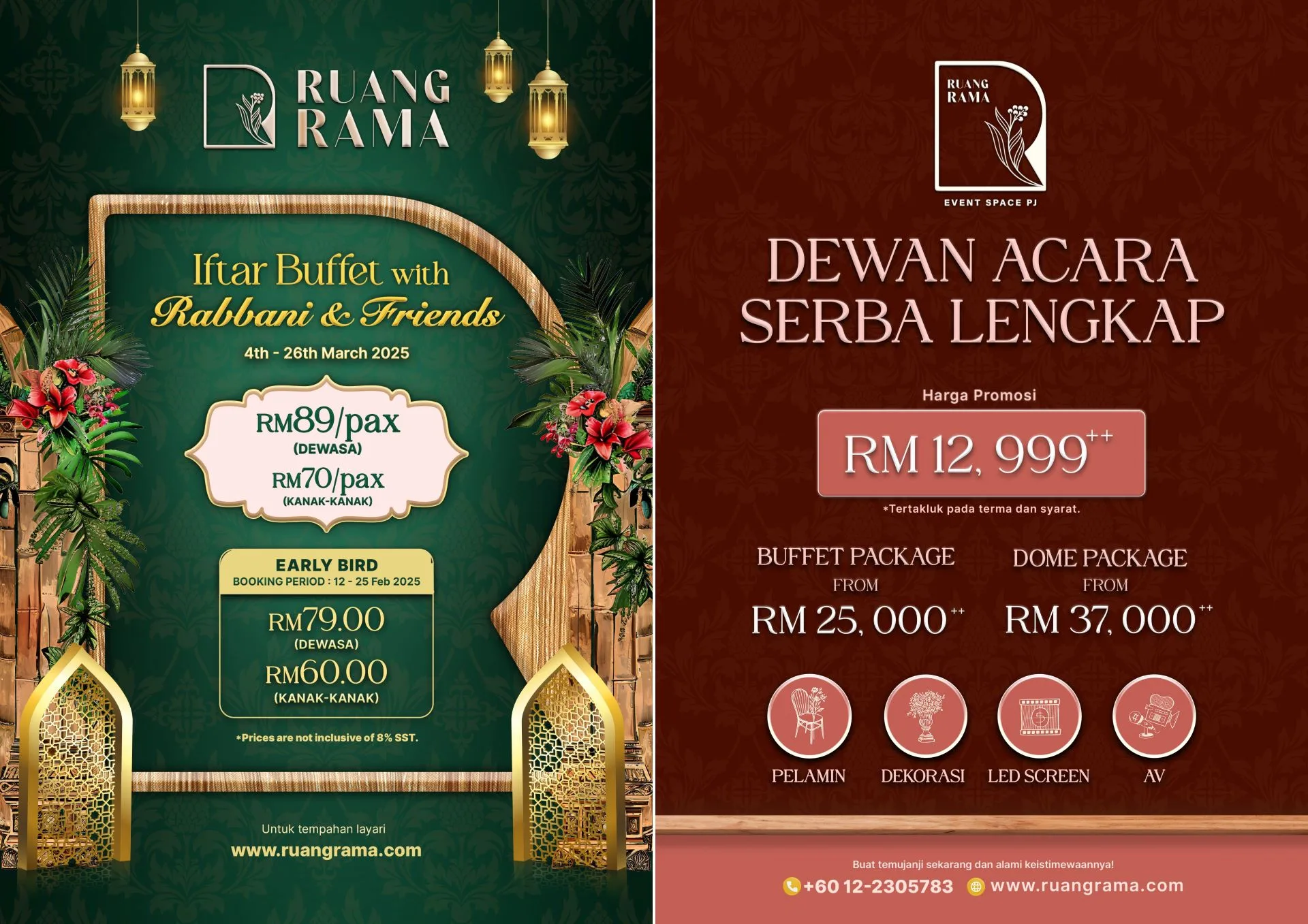 The Iftar buffet is available at an affordable rate of RM89 per adult and RM70 per child. For those planning ahead, a special Early Bird offer runs from 12th to 25th February 2025, where tickets can be reserved for RM79 per adult and RM60 per child. Prices are exclusive of 8% SST. With an enticing spread, live cooking stations, and performances by local talent like Rabbani & Friends, Ruang Rama’s Iftar buffet is the perfect setting to celebrate Ramadhan. Don’t miss out – reserve your table today and experience this unforgettable feast!