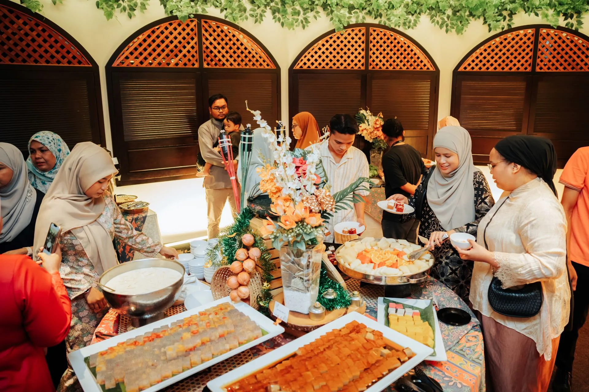 This public buka puasa experience presents an exceptional feast blending traditional and contemporary cuisine. Culinary highlights include telur sotong goreng mamak, ayam salai nangka muda, masak lemak cili padi, stir-fried chilli garlic prawn, and sayur goreng bersama ikan masin. Guests can also indulge in the iconic onde-onde gula Melaka cake and refreshing beverages such as teh tarik and Sirap Bandung.