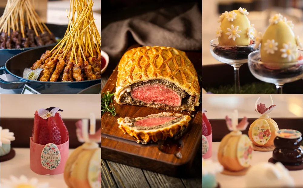 Among the festive highlights are adorable Easter-themed creations such as Easter Deviled Eggs, Dill-Stuffed Eggs with Salmon Roe, Hippity Hop Bunny Cake, and Easter Cake Pops — perfect treats for both kids and adults to enjoy. Seafood lovers can indulge in the fresh Seafood on Ice selection, which includes oysters, blue swimmer crabs, prawns, mussels, and half-shell scallops. For meat enthusiasts, the grill station serves up Grilled Harissa-Marinated Lamb Shoulder, Grilled Chimichurri Boneless Chicken, Grilled Citrus-Marinated Fish Fillet, and Provençale Herb-Marinated Roasted Beef Cube Roll – each offering bold, satisfying flavours.