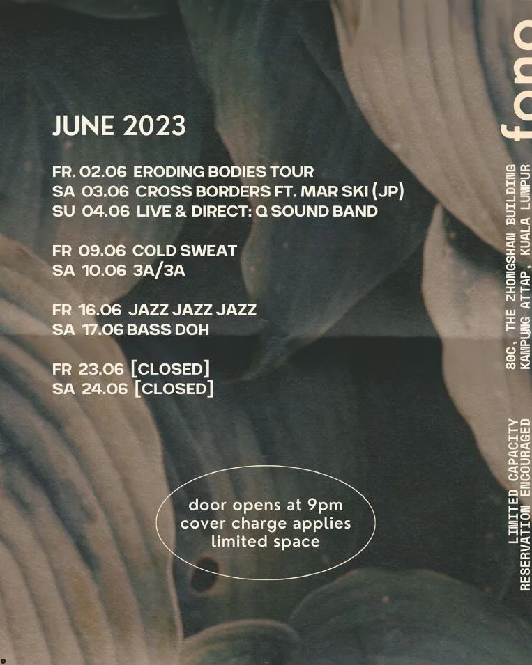 Those looking to jam to some funky tunes this weekend can head over to fono KL! Featuring their resident DJs, from Cold Sweat (hip hop, funk, soul) to 3A/3A (house, techno, electro) to Bass Doh (dubstep, grime, footwork, jungle), there’s bound to be something for every kind of music lover. Doors open at 9pm, and the cover charge ranges from RM30 to RM50 with one free drink. Make sure to DM them on Instagram to book a spot, as walk-ins are subject to availability.