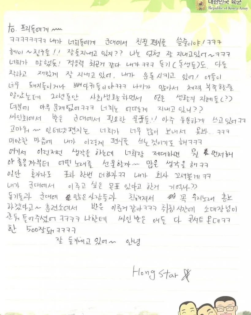 The 29-year-old entertainer recently greeted his fans with a handwritten letter in just a short of a month after enlisting in the military on 30th September this year.