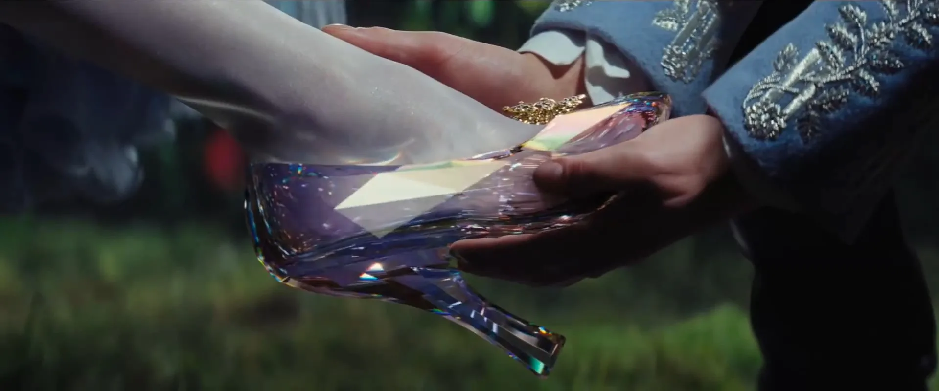 Cinderella’s signature slipper, meanwhile, is made of crystal, designed in collaboration with Swarovski, and based upon a shoe from the 1890s that Sandy Powell found in a museum in Northampton.