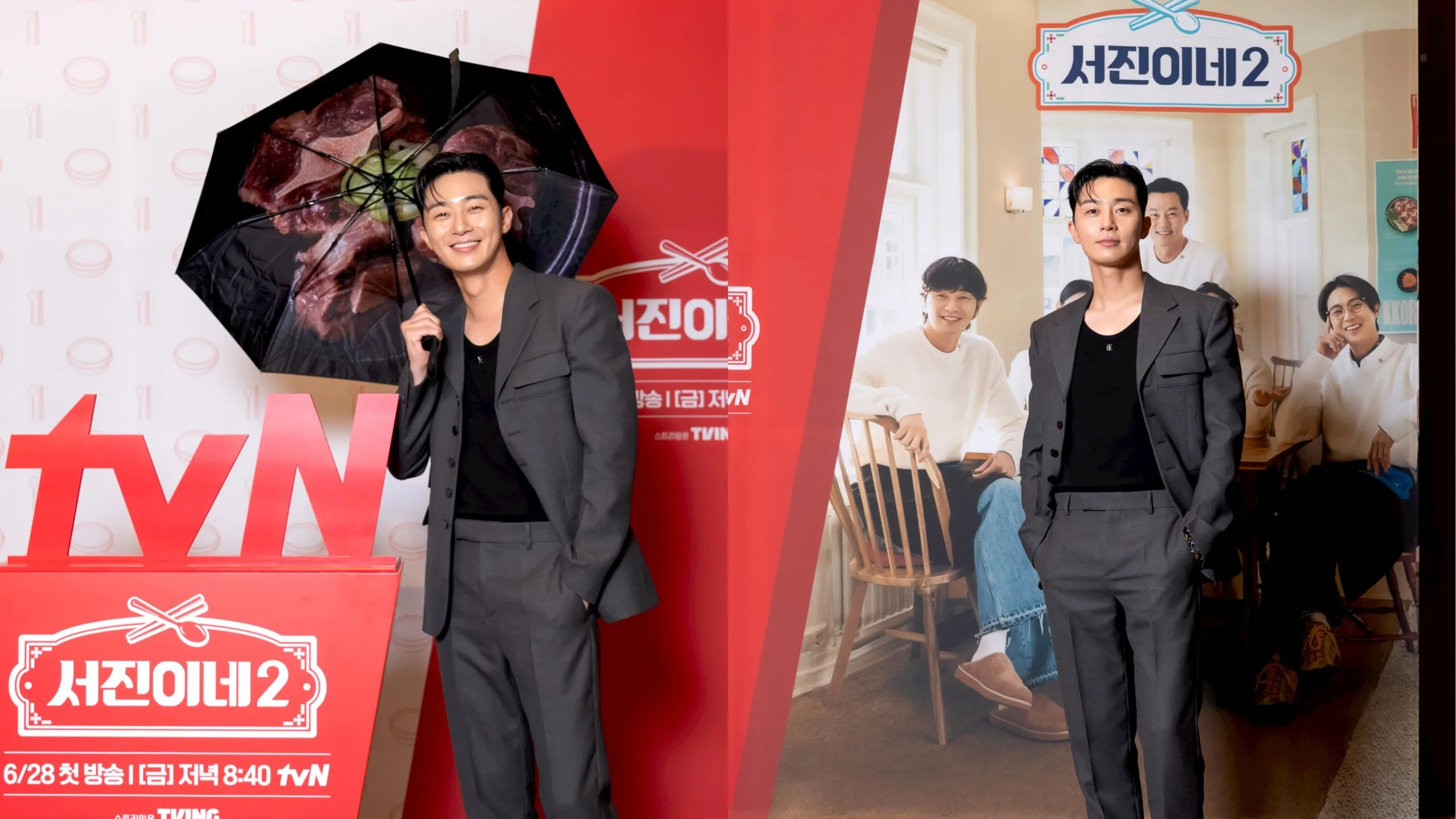 Producing director Nah Yung-suk, Lee Seo-jin, Jung Yu-mi, Park Seo Joon, Choi Woo-shik, and Ko Min-si recently gathered at a local press conference in Seoul to discuss their new show “Jinny’s Kitchen 2” (서진이네 시즌2). The new season of the unscripted show centres around the cast of famous actors opening and running a Korean restaurant in Reykjavík, Iceland.