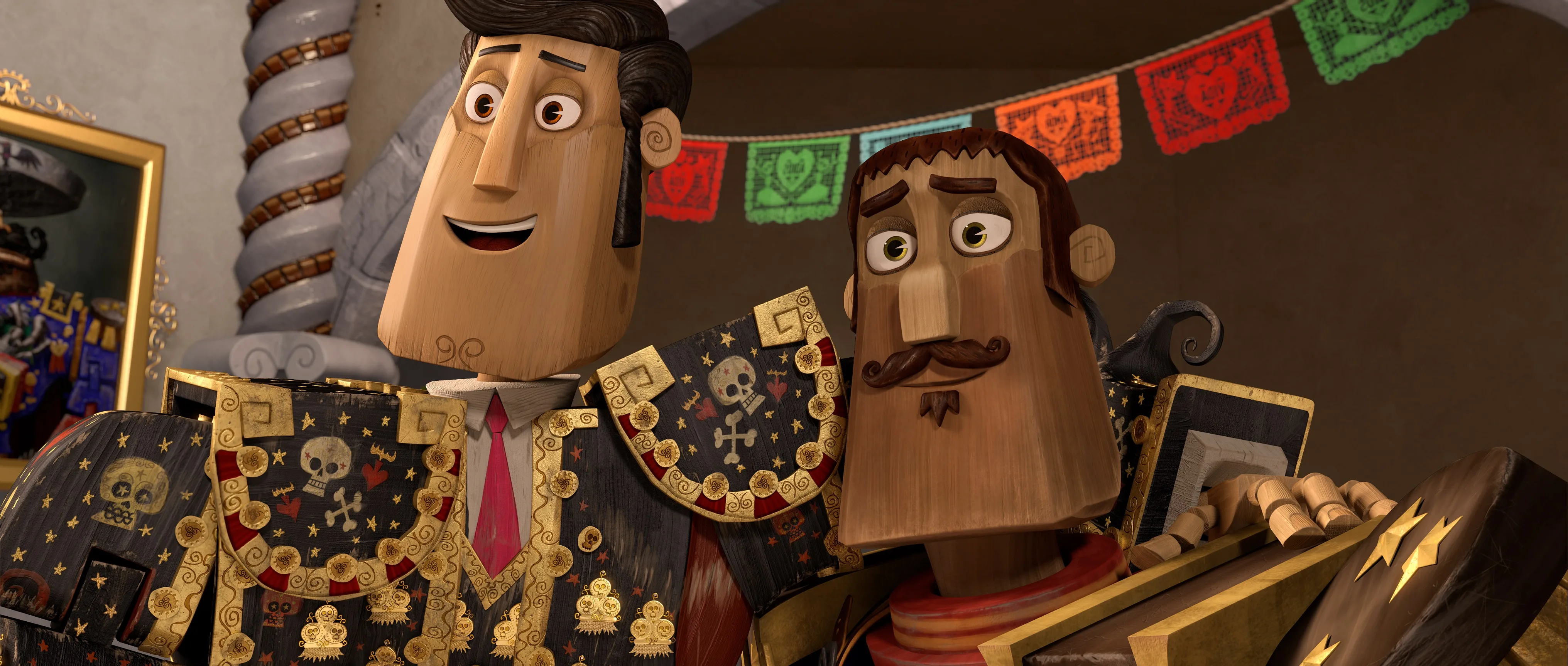 The main characters of the film were designed to look like they were made of wood, causing it to be one of the biggest design challenges for Gutierrez and the film’s visual effects team. Augusto Schillaci, the film’s visual effects supervisor said they’ve avoided the characters from being “super-photorealistic” and focused on creating the characters in square form. Most of the objects also had an underlying visual language that even Manolo’s guitar also bear evidence of his constant playing: