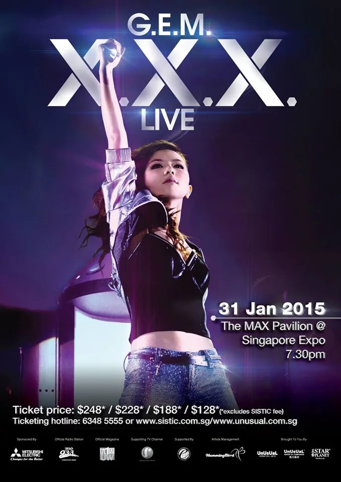The gig is part of her G.E.M. X.X.X. Live World Tour, her second solo concert tour. The “X.X.X.” in the title stands for “more to eXpose, more to eXpect and more eXciting”.