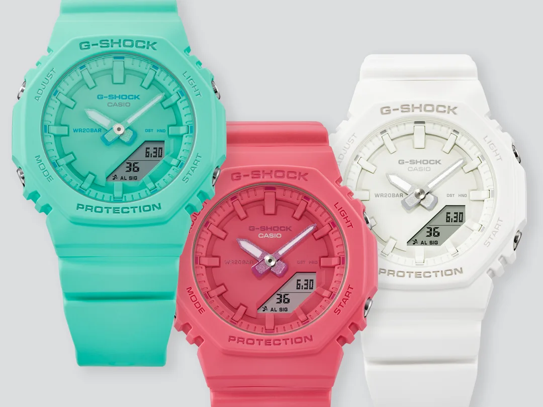 Add colour to your life! Casio has unveiled three new compact G-SHOCK shock-resistant GMA-P2100 timepieces, which bring vibrant monochromatic colors to the 2100 line, popular for its iconic octagonal bezel. In recent years, Casio has been downsizing its popular G-SHOCK watches to build a more extensive lineup of compact, all-gender models.
