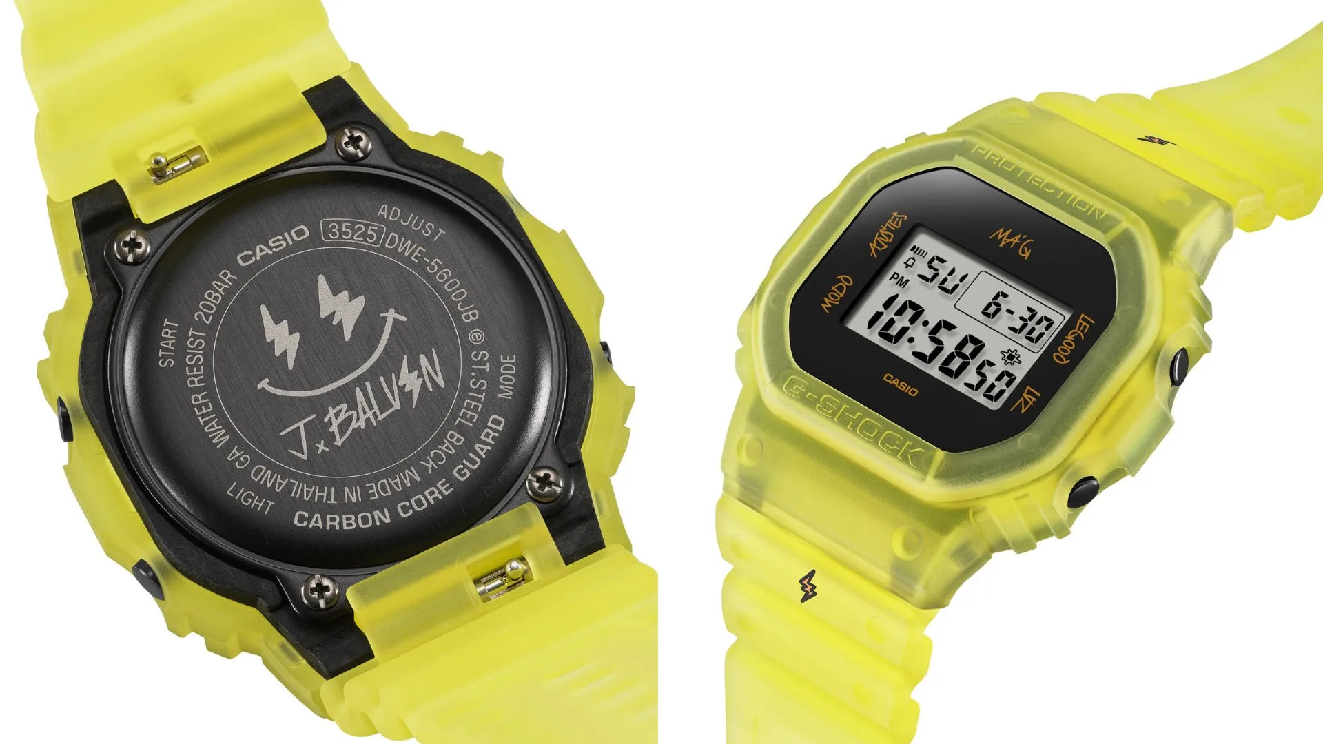 Big vibes, bold design. Global reggaeton icon J Balvin just linked up with G-SHOCK for a fresh new collab that’s electric — literally. Say hello to the DWE-5600JB “Ma G”, a limited-edition timepiece that fuses J Balvin’s signature lightning bolt style with G-SHOCK’s iconic toughness.