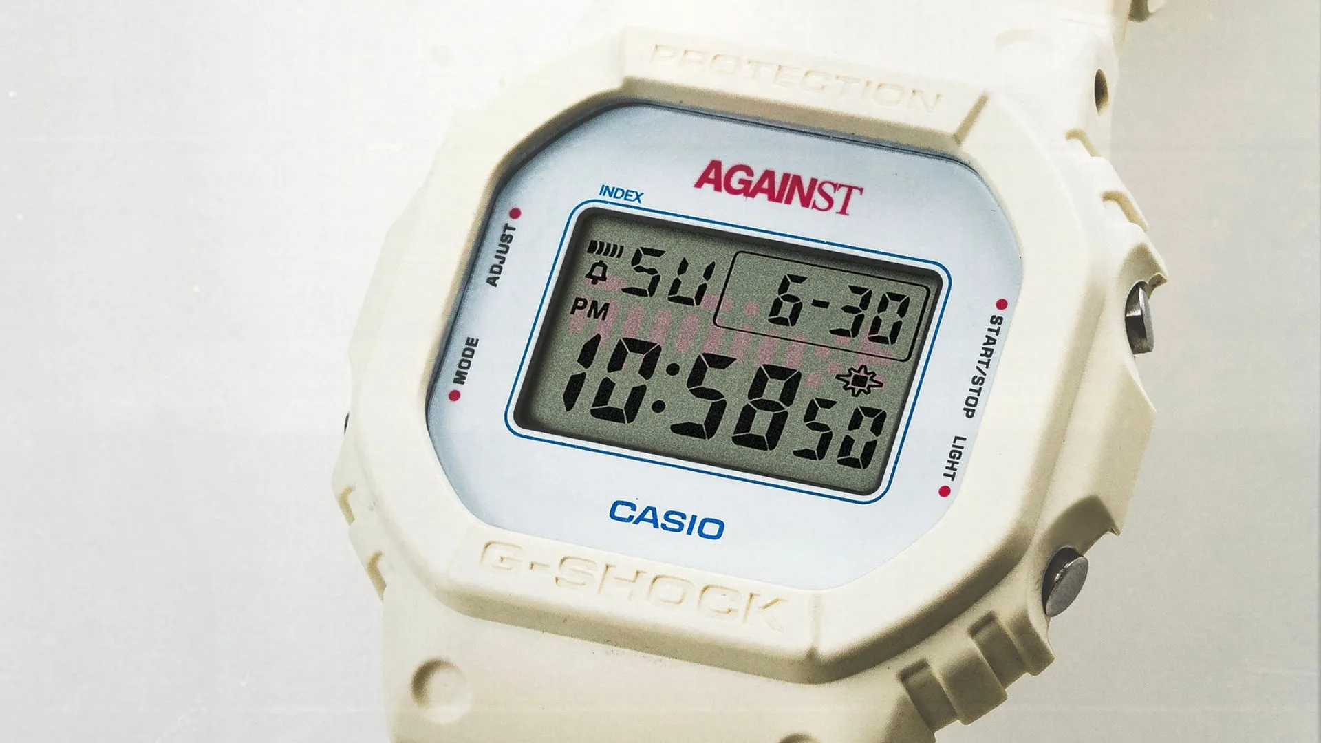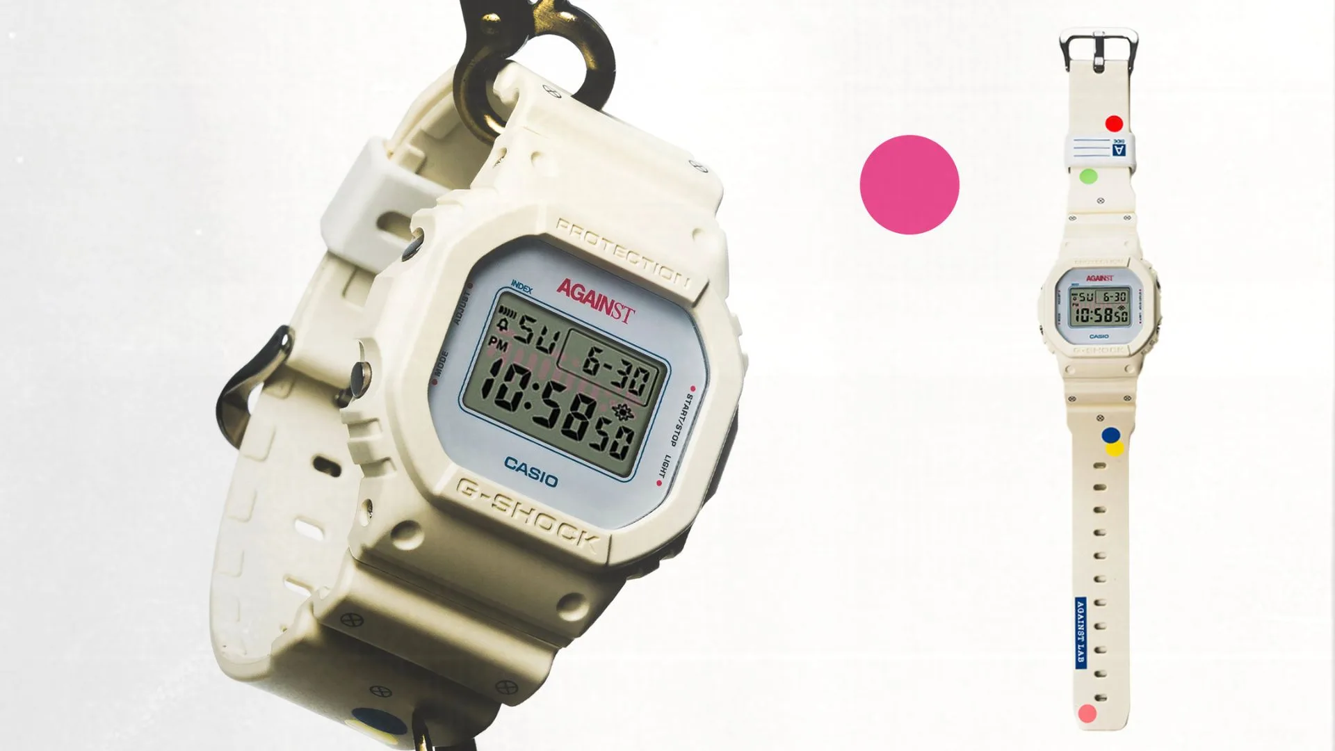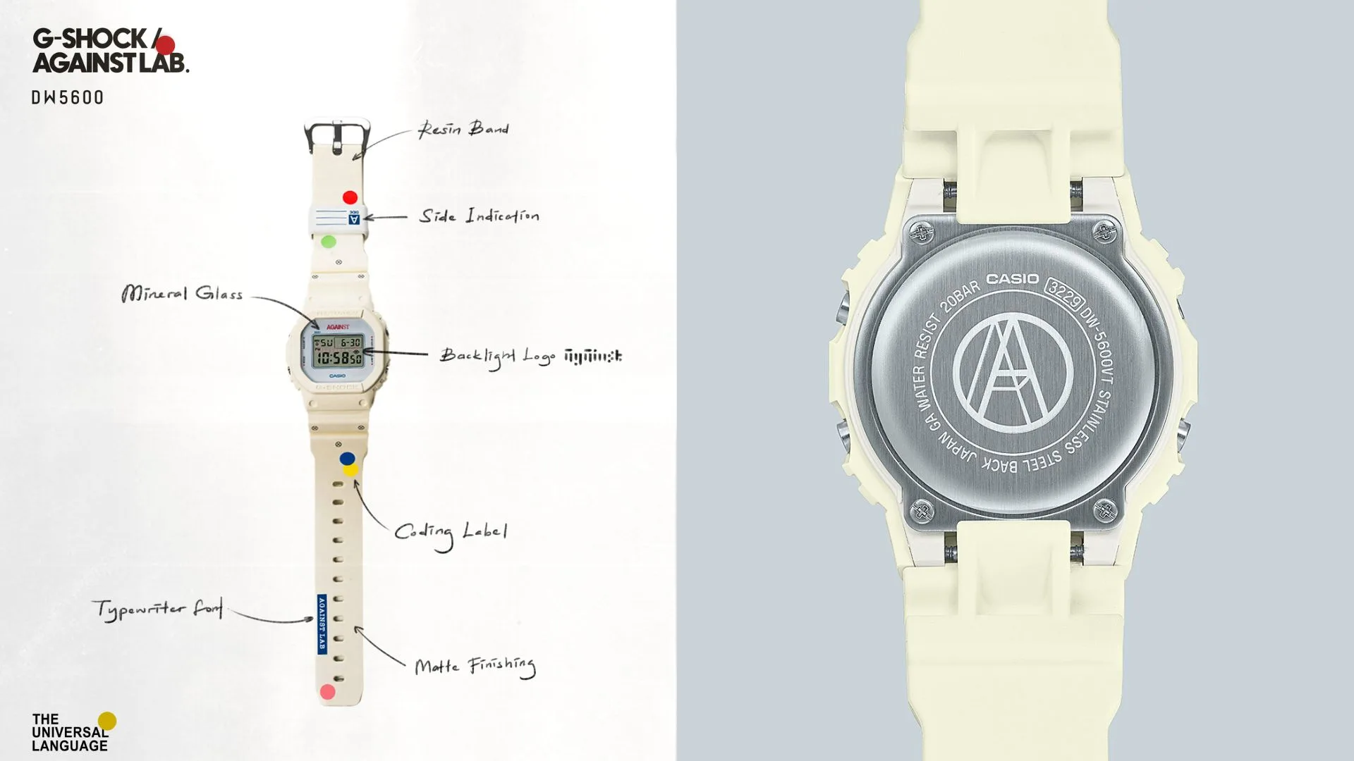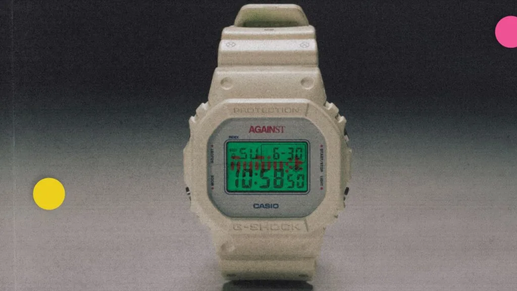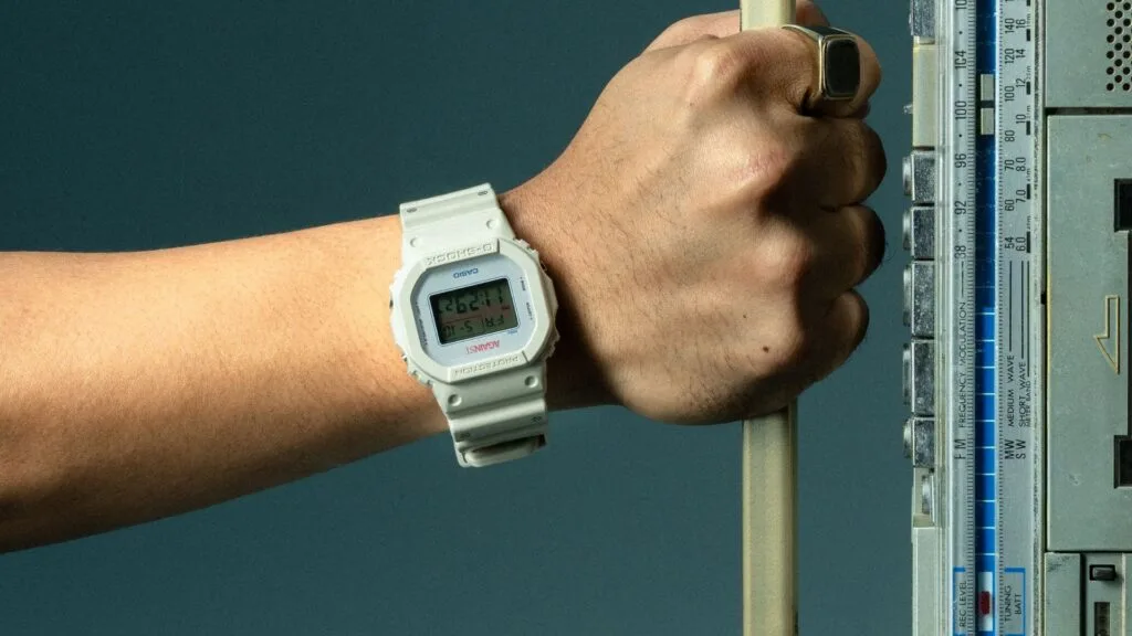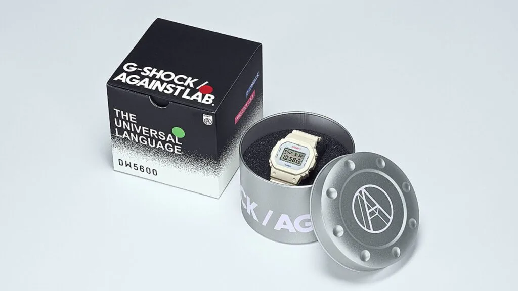 Drawing inspiration from AGAINST’s deep influence from Hip-Hop, and the Casio G-SHOCK DW-5600 model boasting a strong retro aesthetic that pairs well with the cassette tape’s appearance, the two brands conjured up the AGAINST x G-SHOCK DW-5600 “The Universal Language” watch.