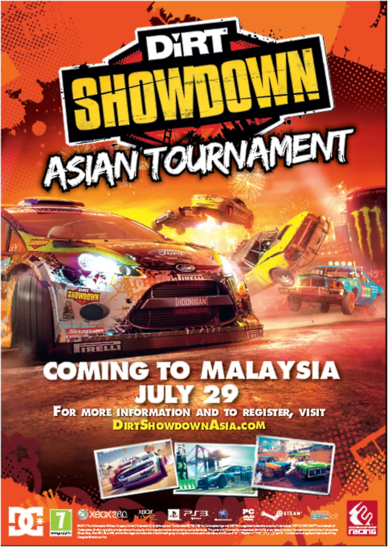 Organised by DC, in conjuction with EpicSoft, and CodeMasters, the “D!RT Showdown” Asian Tournament will be coming to Malaysia (that’s us!), Thailand, Philippines, Vietnam, and Indonesia. For Malaysia, the “D!RT Showdown Tournament” will be held at Paradigm Mall, Kelana Jaya on 29th July 2012 (Sunday) at 12PM.