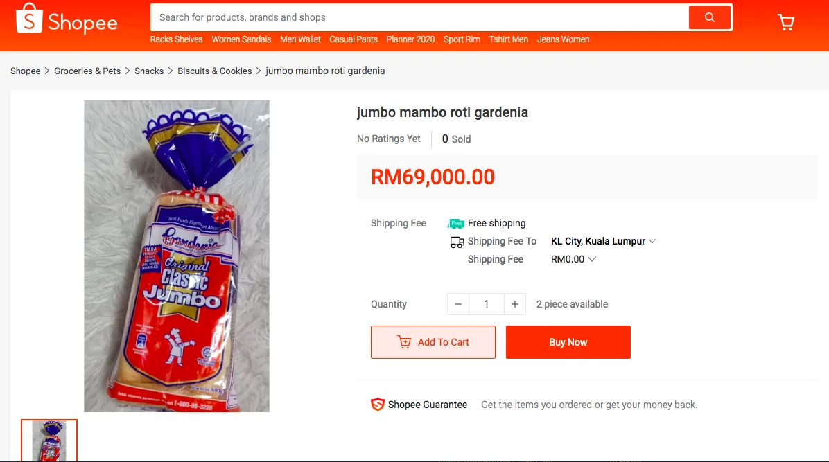 We decided to browse through Shopee Malaysia and notice some sellers are reselling it at RM69k. One is even offering a “free” a scooter to go along with the Gardenia bread.
