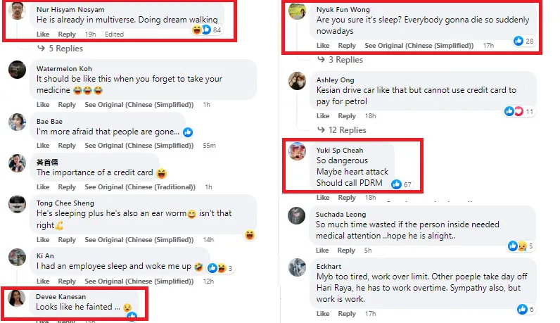 However, others were concerned he might have needed medical attention. “Are you sure it’s sleep? Everybody dies so suddenly nowadays,” one said. “So dangerous. Maybe (he had a) heart attack. Should call PDRM,” another wrote. Some remarked that he seemed unconscious rather than asleep.