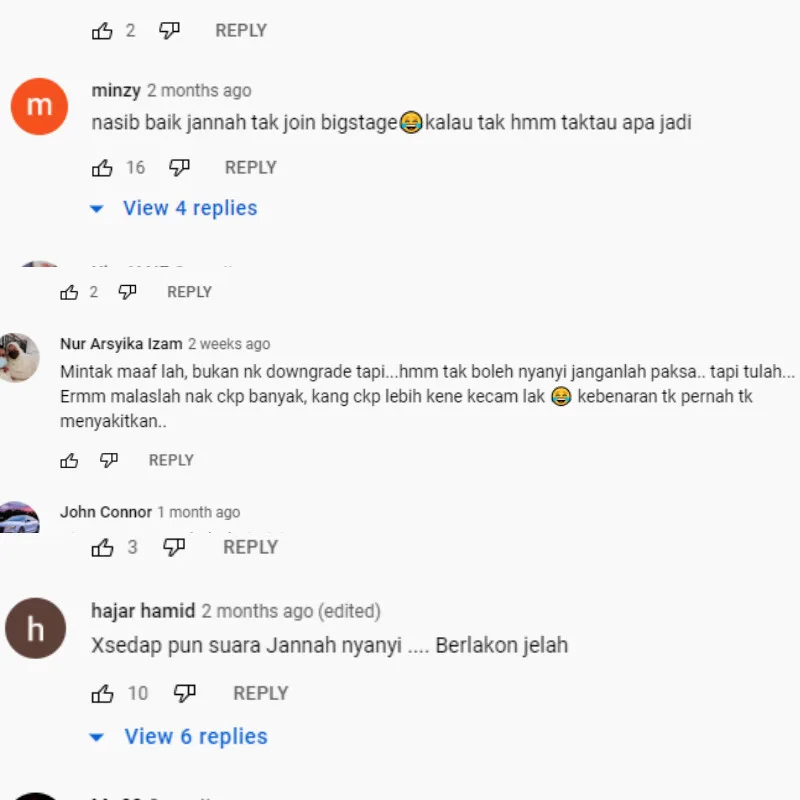 While reactions for both versions of the song have been mostly positive, there are a few negative comments about the song and there were also those who criticised Janna’s live vocals. The “Istikharahku” star performed “Gatal” live several times where she received comments by netizens on YouTube telling her she should stick to acting or enroll in vocal classes.