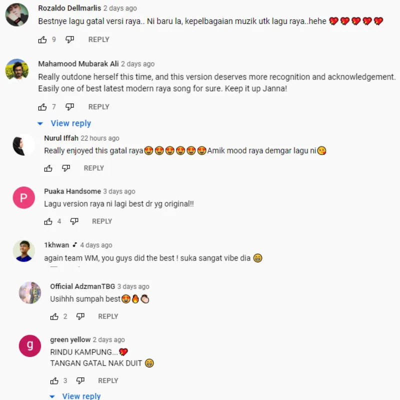 Comments on the “Gatal Raya”‘s official audio have been mostly positive. Fans of the original version praised the song for being just as catchy while others were surprised that a song about a perverted and unfaithful man can be remixed into a fun Hari Raya song.