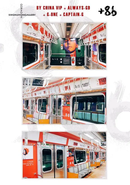 According to Koreaboo, the train runs from 6th July to 5th August and it is located on the first and last carts of train #3022 (Seoul Subway Line 3). Dubbed the “G-Dragon Gallery”, the project was created by 4 fan sites – Always GD, Chinese VIP, Captain G, and G-ONE – to support his album and “M.O.T.T.E (Moment of the Truth)” world tour.