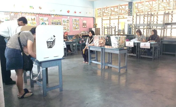 - Malaysian citizens in Johor queuing in the rain, waiting to vote.