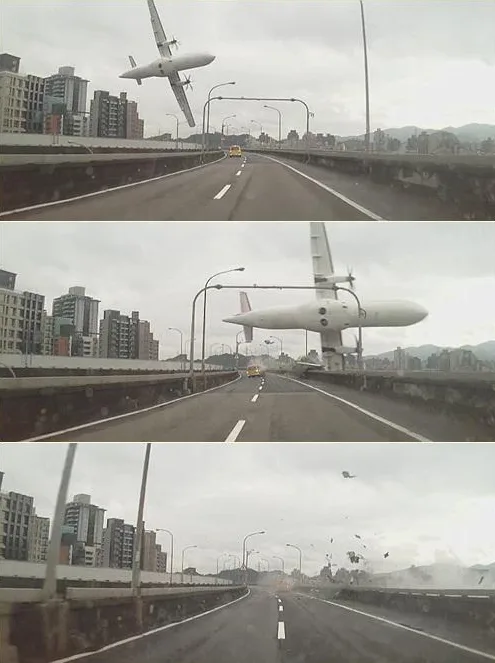 Footage taken from TVBS shows the plane hitting a vehicle while passing close to a highway while unverified images from a Twitter user in Taiwan have shown images of the plane flying close to a highway and going almost sideways before it hit the river.