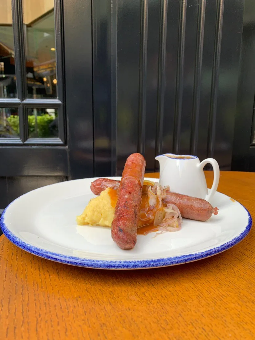 What’s British pub food without bangers and mash?! The traditional meal comes with two succulent beef sausages, mash, and gravy to drench your dish in!