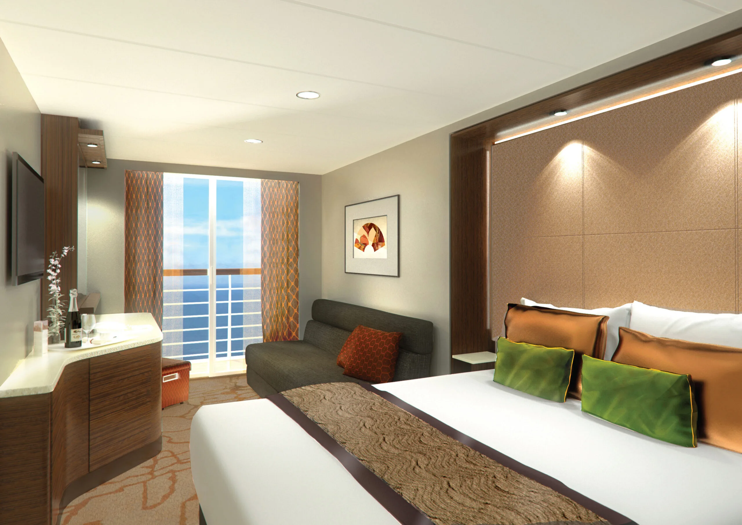 8. There are 1,674 staterooms onboard with 70% of staterooms containing private balconies and 100 connecting rooms catering to families and groups.