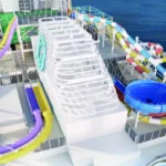 3. The cruise ship, measuring up to 335 metres in length and 40 metres in width, has a total of 18 decks.