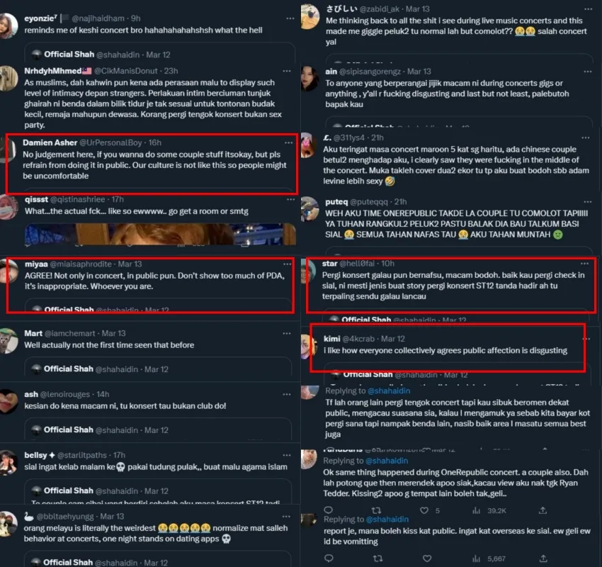 The netizen claimed to have snapped a photo of the couple kissing at one point during the concert but chose not to post out of disgust. According to Shah, their inappropriate showcase did not stop until the end of the concert. “My night was ruined. Moral of the story: PLEASE GET A ROOM! Don’t ruin the atmosphere and make everyone uncomfortable,” the young man said. Netizens responded to the tweet with many expressing their disapproval of the couple’s actions.