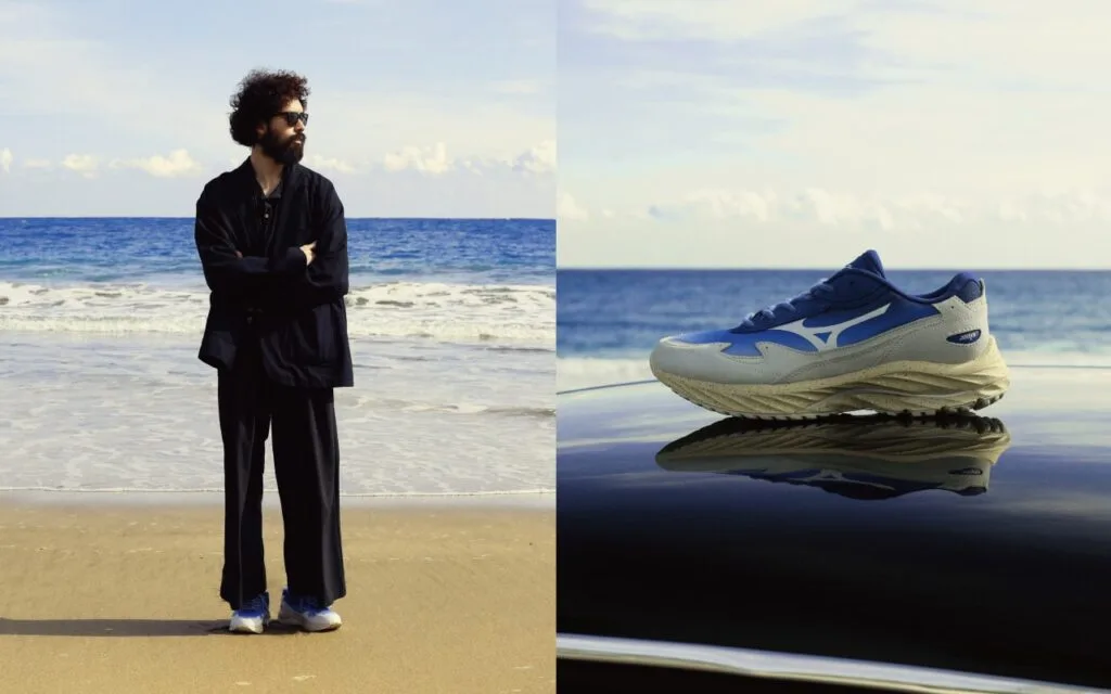 By combining it with the trail running shoe “WAVE MUJIN” sole, it creates a cross between vintage design and modern performance footwear. The technical shoes are made with wave technology and Michelin soles (Michelin, of course, are known for their Michelin tyres).