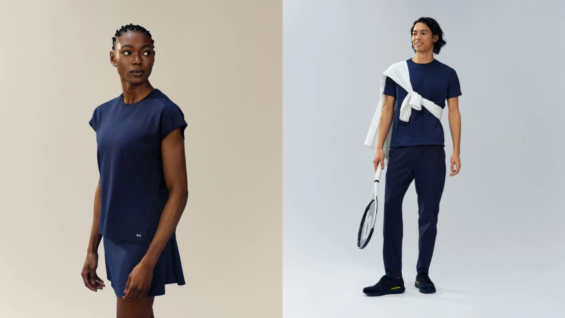 The simple, yet, refined designs testify to extensive athlete feedback, infusing functional beauty into everyday wear. Anchored in a sophisticated navy hue, the colour scheme exudes understated elegance. Silhouettes strike the perfect balance between comfort and mobility, while stand-up collars elevate neckline aesthetics. Bonded pants hems eliminate visible stitching.